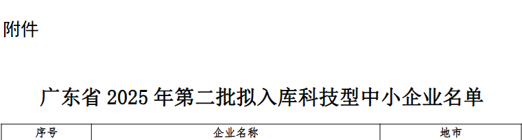 附件:广东省2025年第二批拟入库科技型中小企业名单