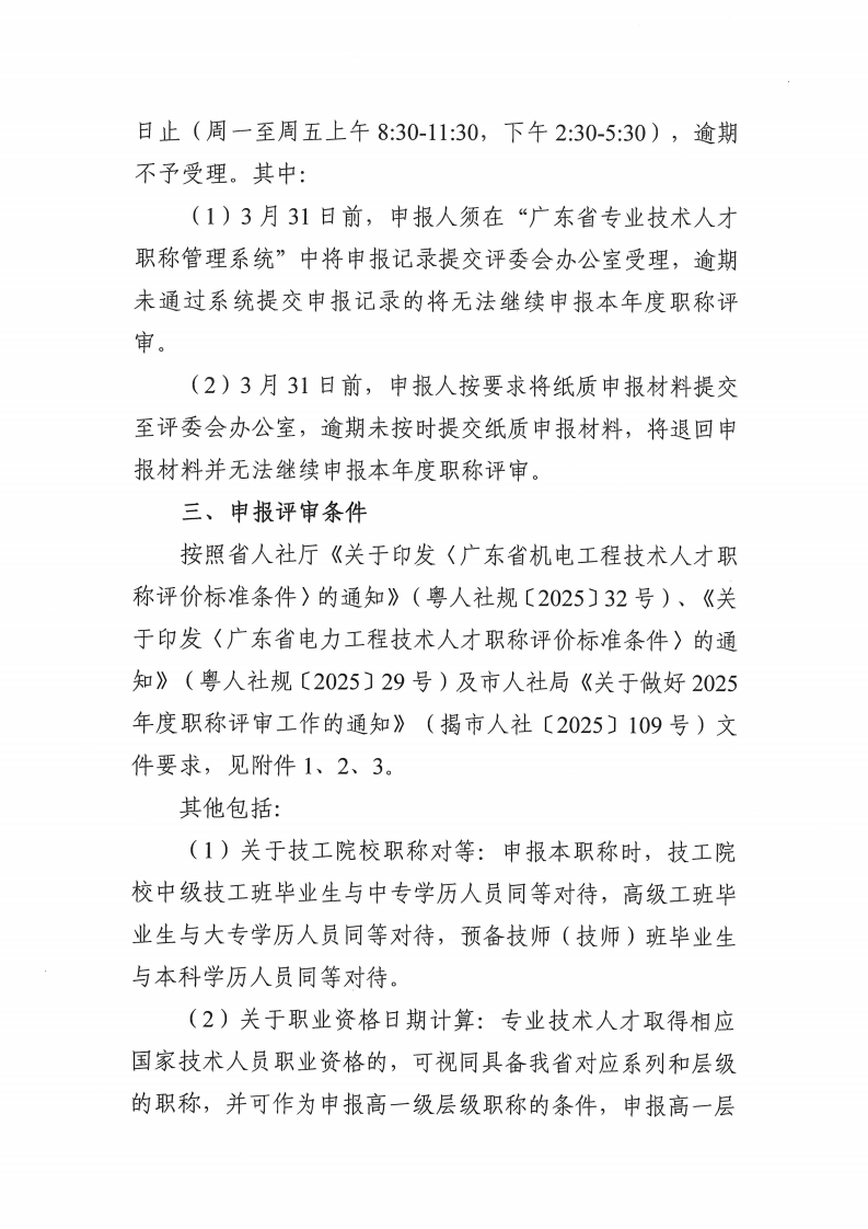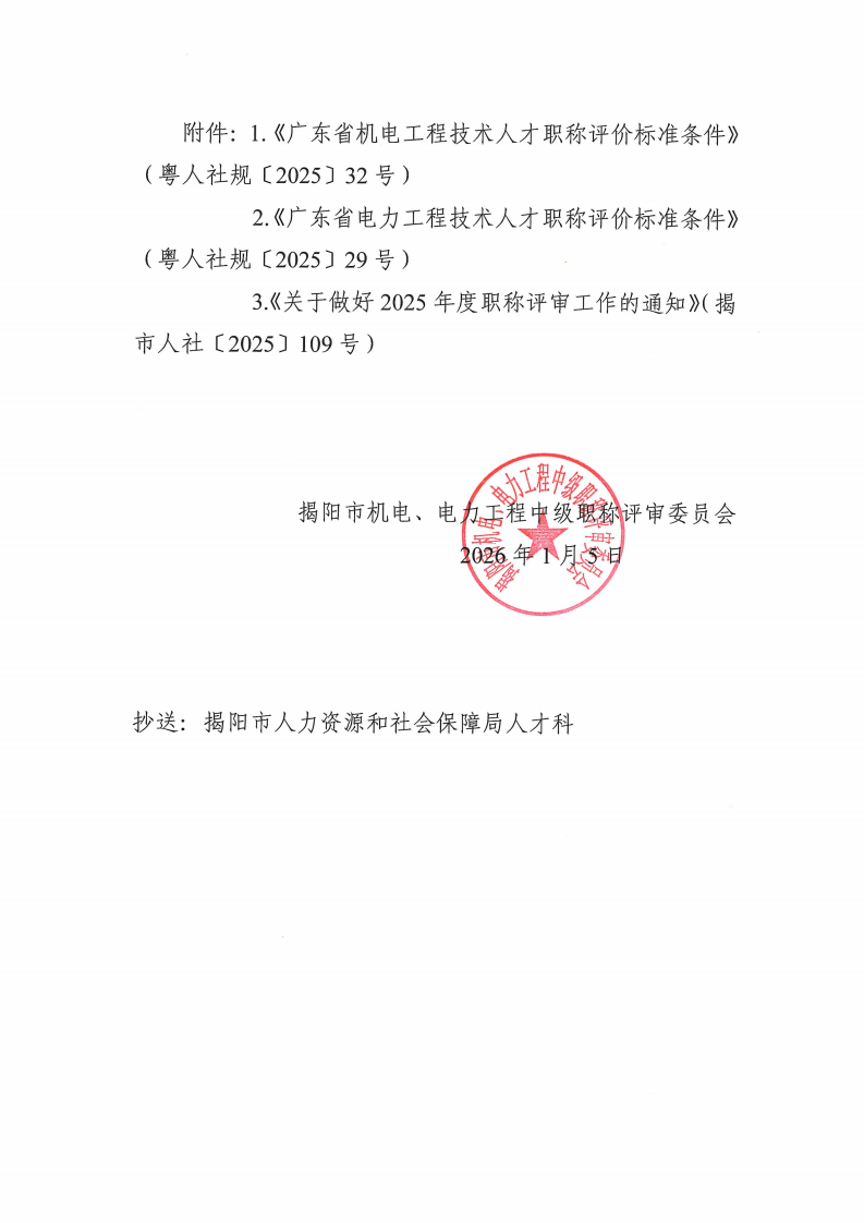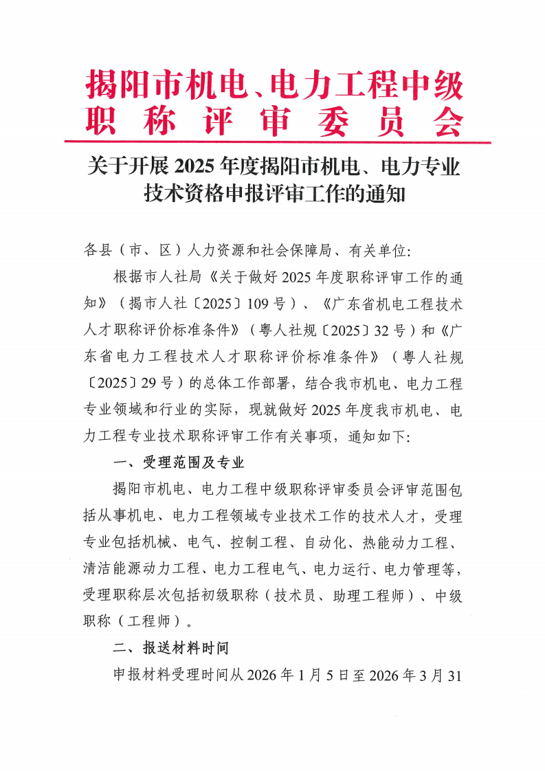 关于开展2025年度揭阳市机电、电力专业技术资格申报评审工作的通知