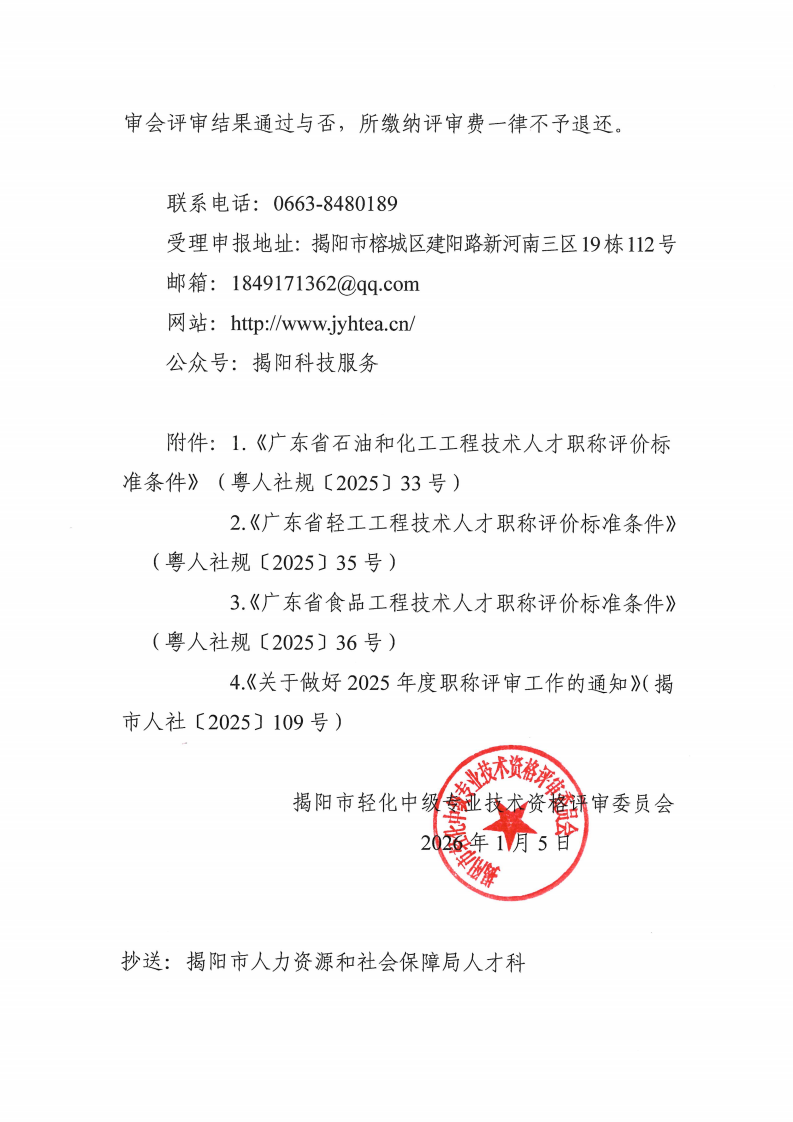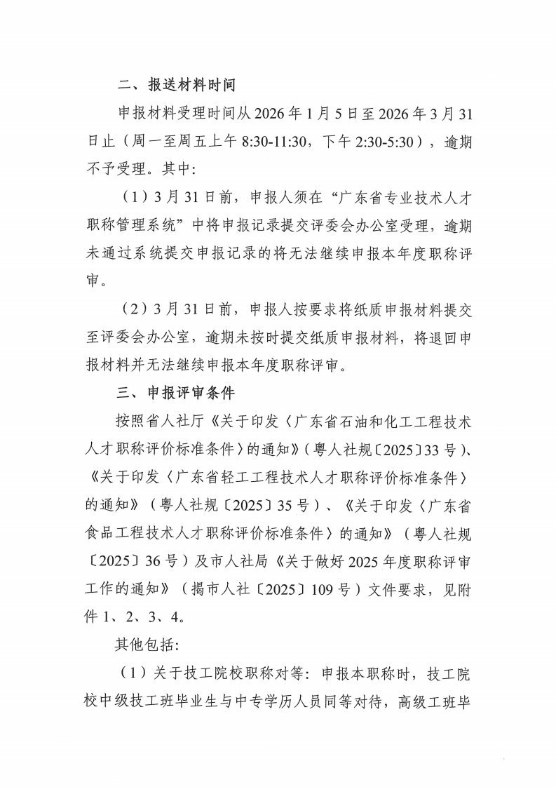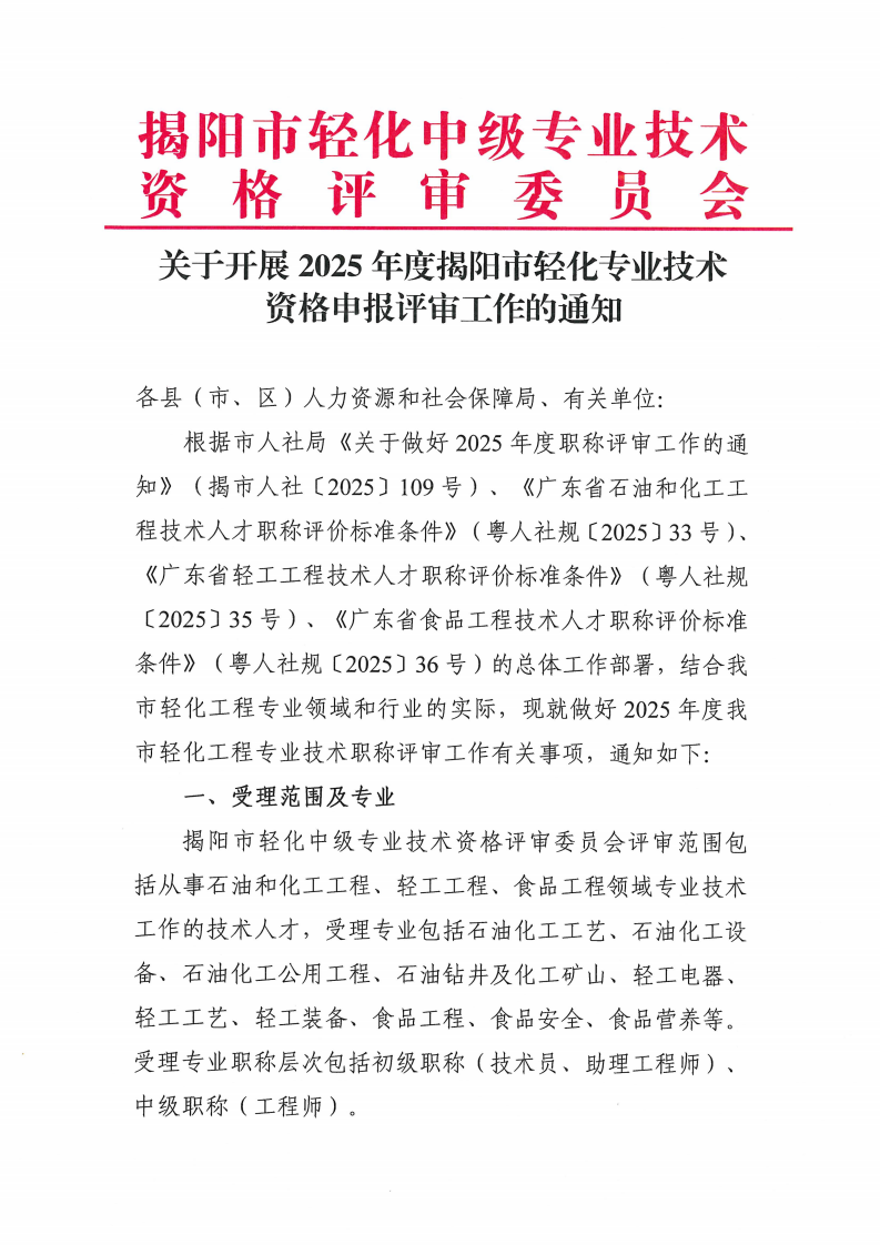 关于开展2025年度揭阳市轻化专业技术资格申报评审工作的通知